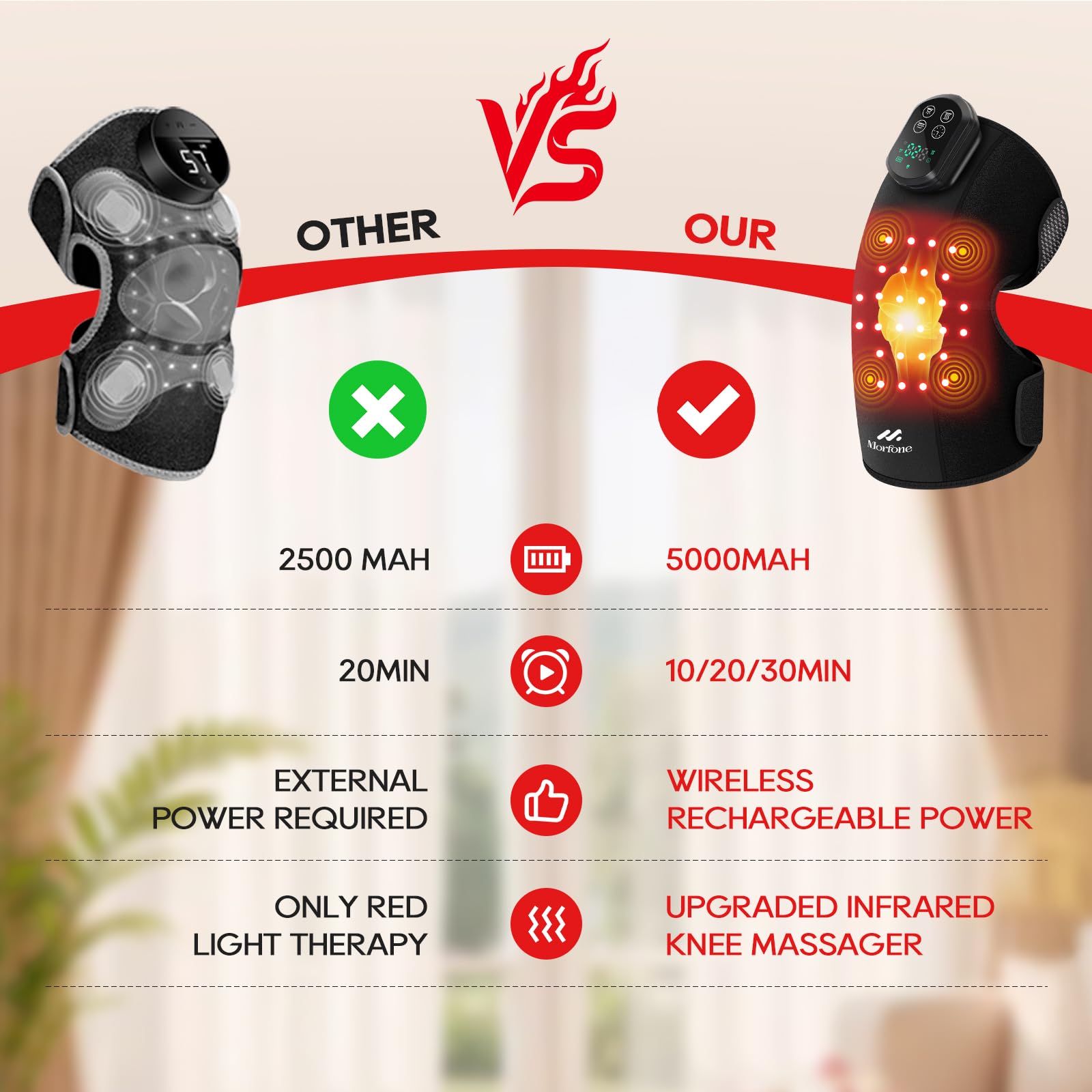 All-in-One Knee Care: Combines red light, heat, and vibration for full knee relief.